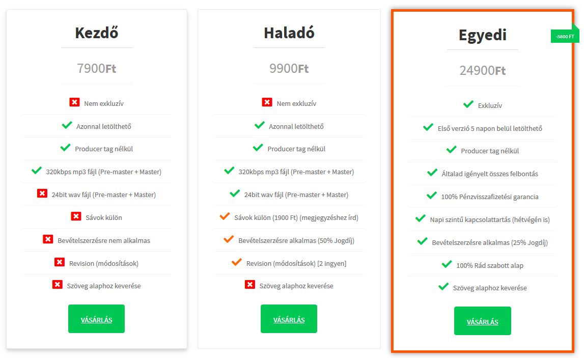 # Haladó: Ha most azonnal szeretnél egy minőségi alapot, akkor Neked a Haladó csomagra van szükséged. Ennél az opciónál már wav-ban is megkapod az alapot és lehetőséged van apró módosításokat kérni.